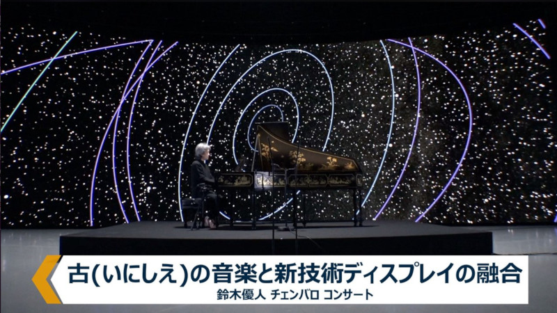 This concert was a live performance that combined harpsichord playing by Yuto Suzuki with cutting-edge visual technology, and was held at the virtual production studio“C∞” installed at Kadokawa Daiei Studio.