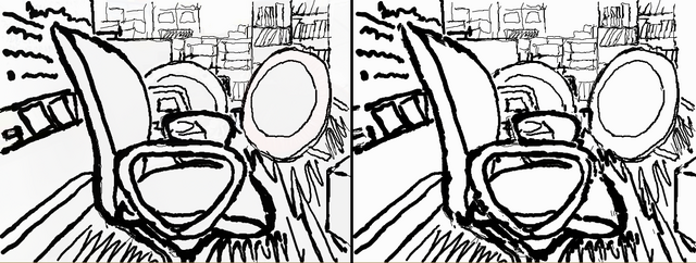 Additionally, since the software internally stores depth information together with all drawn lines, it is possible to apply processing that reflects depth information to sketches after they have been completed. The current system can generate a “blur effect” that allows focusing on arbitrary depths, as well as images that enable stereoscopic viewing using binocular parallax.