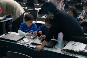 12月14日に明治大学中野キャンパスにて、わくわくサイエンスラボ2013と題し、明治大学総合数理学部による小中学生向けの科学教室が開催されました。今年も福地研究室では、宮下研の協力のもと、身近な世界を「センサーで測ろう!」というテーマで、本研究室で開発しているマイクロコンピュータとセンサを組み合わせたデータロガー教材を使った実習を行いました。
