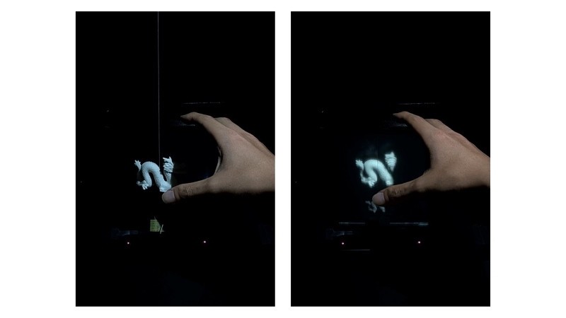AIRRと立体ディスプレイを用いた空中立体映像に対し、現実の光学環境を反映した陰影付けによって実在感を高める手法について発表しました。本研究では、現実の光学環境および手とのインタラクションを反映したリアルタイム陰影計算手法と、空中立体映像装置に適した映像出力手法を提案しました。