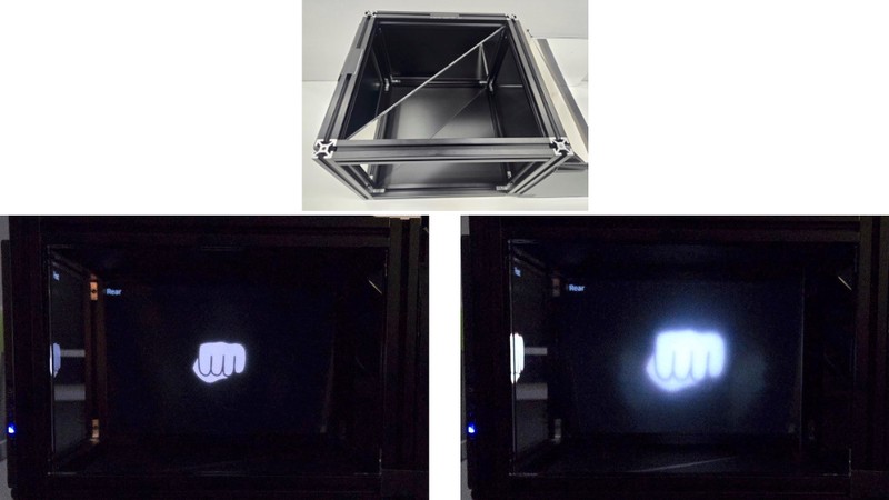 AIRR と DFD 技術を用いて、舞台向けに奥行き感のある空中映像を疑似的に表示する手法を開発しました。あたかも舞台奥から手前へと像が移動しているかのような錯覚を生じさせることができます。